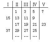 7.将正奇数1、3、5、7,……排成五列,按下表格式排下去,1995排在第几列?