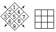 2.将(1)2、4、6、8、10、12、14、16、18;(2)5、7、9、17、19、21、29、31、33各九个数分别填入下面图中的方格内,使每行、每列和每条对角线上的和都相等。