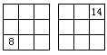 7.在下图的空格中填入不大于15且互不相同的自然数,使每一横行,每一竖列及每条对角线上三个数的和都等于30。