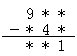 用1-9九个数字组成竖式,把左面竖式中的“*”改成相应的数字。使竖式成立。