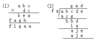 6.下列竖式中不同的字母表示不同的数字,相同的字母表示相同的数字,当它们各代表什么数时,竖式成立。