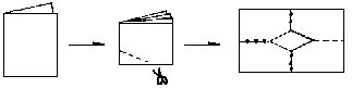 4.把一张长方形纸对折再对折,然后在折叠着的角上剪一刀,纸的中间就剪出了一个洞(如下图所示)。