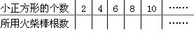 (1)填写下面表格,想一想,小正方形的个数与所用火柴棒的根数有什么关系?