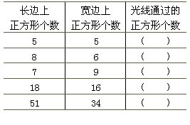 (1)调查光线通过的小正方形个数与长边、宽边上小正方形个数的关系。