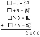 10.在右式的四个□中填入同一个数字,使得“迎”、“新”、“世”、“纪”四个字所代表的各数之和等于2000。中应填几?