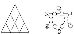 31.自然数1-12中有些已填入右上图的○内,请将其余的数补充填入,使得每条直线上的四数之和都相等。