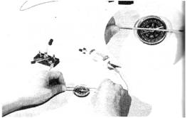 如上图所示:在桌上放一个指南针,指针停止摆动后,指南针指向______________方向,把电路中的导线拉直靠在指南针的上方,接通电流时指南针__________________;断开电流指南针__________________。
