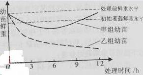 C.12h后,若继续培养,甲组幼苗的鲜重可能超过处理前,乙组幼苗将死亡