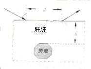 是折射角,ν1,ν2 为别是超声波在肝外和肝内的传播速度),超声波在肿瘤表面发生反射时遵循的规律与光的反射规律相同,已知ν2==0.9v1入射点与出射点之间的距离是d,入射角为i肿瘤的反射面恰好与肝脏表面平行,则肿瘤离肝脏表面的深度h为