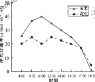 右图是夏季晴朗的白天,玉米和花生净光合速率(时间单位、单位叶面积吸收