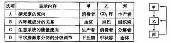 4.下表选项中,甲、乙、丙三者关系能用右下图表示的是