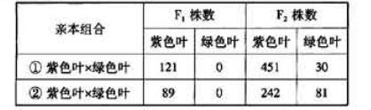 (2) 表中组合①的两个亲本基因型为____,理论上组合①的F2紫色叶植株中,纯合子所占的比例为_____。