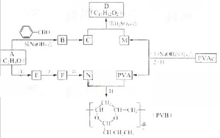 常用作风信子等香精的定香剂D以及可用作安全玻璃夹层的高分子化合物PVB的合成路线如下: