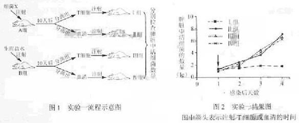 实验一:用不带特殊病原体的小鼠进行如下特异性免疫实验,过程如图1,结果如图2,