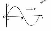 位于坐标原点处的波源A沿y轴做简谐运动。A刚好完成一次全振动时,在介质中形成简谐横波的波形如图所示。B是沿波传播方向上介质的一个质点,则