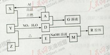 (1)组成单质Y的元素在周期表中的位置是 ;M中存在的化学键类型为 ;R的化学式是 。