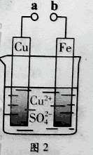 D、a和b分别连接直流电源正、负极,电压足够大时,Cu2+向铜电极移动
