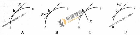20.一带负电荷的质点,在电场力作用下沿曲线abc从a运动到c,已知质点的速率是递减的。关于b点电场强度E的方向,下列图示中可能正确的是(虚线是曲线在b点的切线)