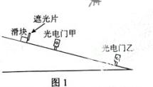 利用图1所示的装置可测量滑块在斜面上运动的加速度,一斜面上安装有两个电光门,其中光电门乙固定在斜面上靠近底端处,光电门甲的位置可移动。当一带有遮光片的滑块自下面上滑下来时,与两个光电门都相连的计时器可以显示出遮光片从光电门甲至乙所用的时间