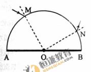 (2)(9分)一半圆柱形透明物体横截面如图所示,底面AOB镀银(图中粗线),O表示半圆截面的圆心。一束光线在横截面内从M点入射,经过AB面反射后从N点射出。已知光线在M点的入射角为30°,∠MOA=60°,∠NOB=30°.求
