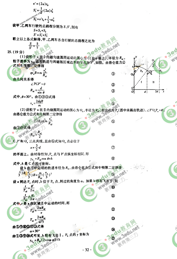 轴正向射入区域I,其速度大小是a的