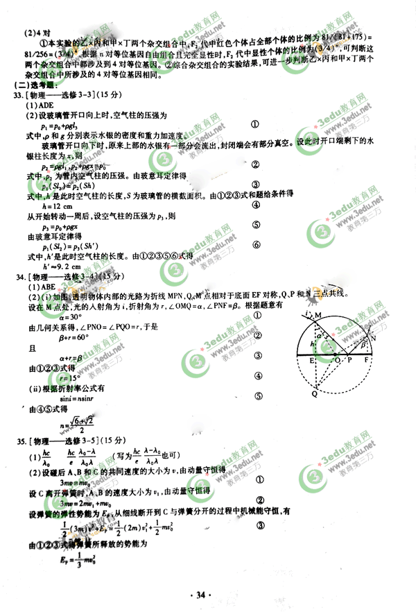 34.[物理--选修3-4](15分)