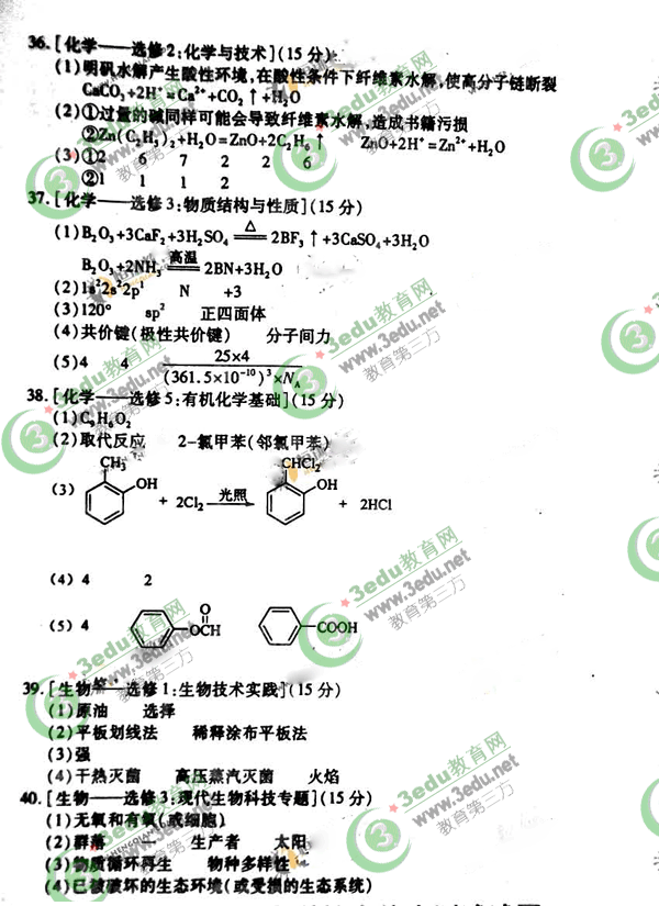 36.[化学--选修2:化学与技术](15分)