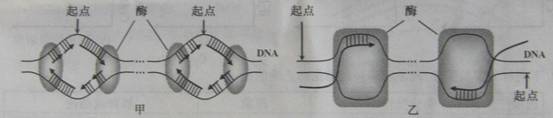 D、一个细胞周期中,甲所示过程在每个起点只起始一次,乙可起始多次