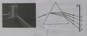 ,其中A、B、C是正的常量。太阳光进入三棱镜后发生色散的情形如下图所示。则