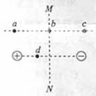 如图所示,在两等量异种点电荷的电场中,MN为两电荷连线的中垂线,a、b、c三点所在直线平行于两电荷的连线,,且a与c关于MN对称,b点位于MN上,d点位于两电荷的连线上。以下判断正确的是