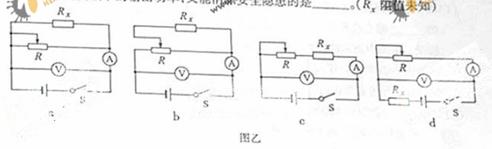 ②实验完成后,该同学对实验方案进行了反思,认为按图甲电路进行实验操作的过程中存在安全隐患,并对电路重新设计。在图乙所示的电路中,你认为既能测出电源在不同负载下的输出功率,又能消除安全隐患的是 。(Rx阻值未知)