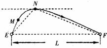 真空中,两个相距L的固定点电荷E、F所带电荷量分别为QE和QF,在它们共同形成的电场中,有一条电场线如图中实线所示,实线上的箭头表示电场线的方向。电场线上标出了M、N两点,其中N点的切线与EF连线平行,