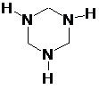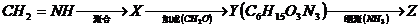Y是由X和甲醛加成所得的产物,由于Y的分子式为C6H15O3N3,分子中有3个氧原子,所以X和3个甲醛分子发生了加成,再利用加成反应的基本图式"A+B=C"可得X的分子式,其计算表达式为:X=Y-3CH2O= C6H15O3N3-3CH2O= C3H9N3, 即X为-[CH2-NH]3-,此式和聚乙烯有相似之处,只不过是聚合度为3而已。由于X分子空间结构也![]()
