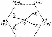 。已知六边形中心O点处的场强可用图中的四条有向线段中的一条来表示,它是哪一条?