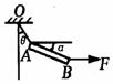 15.如图16-3所示,均匀杆AB重为G,A端用细绳吊在O点,在B端加一个水平力F,使AB静止,此时杆与水平方向夹角为a,细绳与竖直方向成q角,则:( )