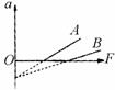 22.质量为m的物体放在A地的地平面上,用竖直向上的力F拉物体,物体的加速度与拉力关系如图中图线A所示;质量m的物体在B地的地平面上做类似实验,得到加速度与拉力关系如图16-8中图线B所示,A、B两线的延长线交aO轴于同一点,设A、B两地的重力加速度分别为g和