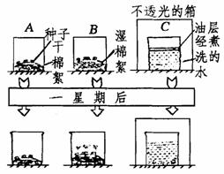 23.(10分)为了研究种子萌发时所需的条件,某学生设计了3个实验装置(A、B、C)置于光下,如图16-9所示.