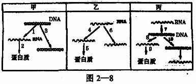 26.(12分)已知甲、乙、丙三种类型的病毒,它们的遗传信息的传递方式分别用图2-8表示。请对图仔细分析后回答下列问题: