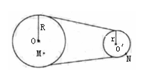 16.如图所示,有一个皮带传动装置. 两轮半径分别为R和r,R=2r. M为大轮上的一点,