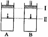 12.下图所示的两相同带有活塞的容器A、B中,在常温常压下,A中充入N2,B中充入NO2时。已知:A、B两容器的活塞均停在I处(图中虚线部分),当用外力缓缓下压活塞至Ⅱ处时,则外力对容器所做的功关系是( )