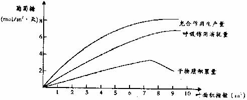 (1)下图为某森林生态系统叶面积指数(单位地表面积上植物叶片的总面积)与光合作用、呼吸作用关系示意图