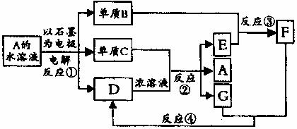<1>下图每一方框中的字母代表一种反应物或生成物,且从A到F均是中学化学中常见的物质。其中附表所列的是反应③在某温度下该反应起始和某时刻的反应混合物的组成。请填空: