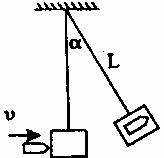 26.(14分)冲击摆是一个用细线悬挂着的小沙箱(空气阻力可忽略不计),用这种装置可以测定弹刃的速度。如图所示,让质量为m的弹丸击中质量为M的沙摆,并陷入其中一起上摆的最大角度为α,设摆长为L,求弹丸的速度大小。