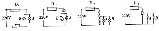 20.如下图所示,把标有“110V,60V”和“110V,40V”的A、B两个灯泡按下面四种情况 接入220V的照明电路,且都调到正常发光时,选用的保险丝从粗到细,顺序是( )