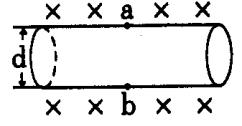 28.(10分)如图为电磁流量计示意图,直径为d的水磁性材料制成的圆形导管内,有导电液体流动,磁感应强度为B的匀强磁场垂直于导电液体流动方向而穿过一段圆形管道,若测得管壁内a与b两点间的电势差为U,求管中导电流体的流量?(流量为单位时间内流过的集体体积)