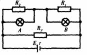 21.如右图所示电路中,灯A、B都能正常发光,忽然灯A亮度变亮,灯B亮度变暗,如果电路中有一处出现断路故障,则出现断路故障的电路是( )