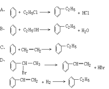 11、绿色化学对于化学反应提出了“原子经济性”(原子节约)的新概念及要求。理想的原子经济性反应是原料分子中的原子全部转变成所需产物,不产生副产物,实现零排放。下列几种生产乙苯的方法中,原子经济性最好的是(反应均在一定条件下进行)
