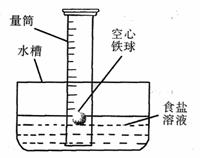 10.如右图,液面上浮着一个空心铁球,数天后可观察到的现象是 ( )