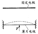 待测压力F作用于可动膜片电极上时,可使膜片产生形变,引起电容的变化,将电容