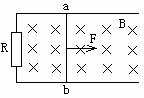 21、如图所示,水平放置的光滑金属导轨上有一质量为m的金属棒ab,导轨一端连接电阻R,器它电阻不计,磁感强度为B的匀强磁场垂直导轨平面向下,金属棒ab在一水平衡力的作用下静止起向右运动。则:()